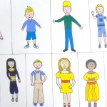 human/canine characters featuring in the Birthday Bunch Stories. acrylic/pen originals, A3, NOT FOR SALE