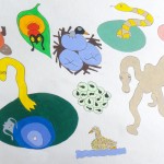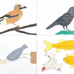 Jay, Jackdaw, Heron and the ‘Fishy Five’. acrylic/pen original, A3, NOT FOR SALE